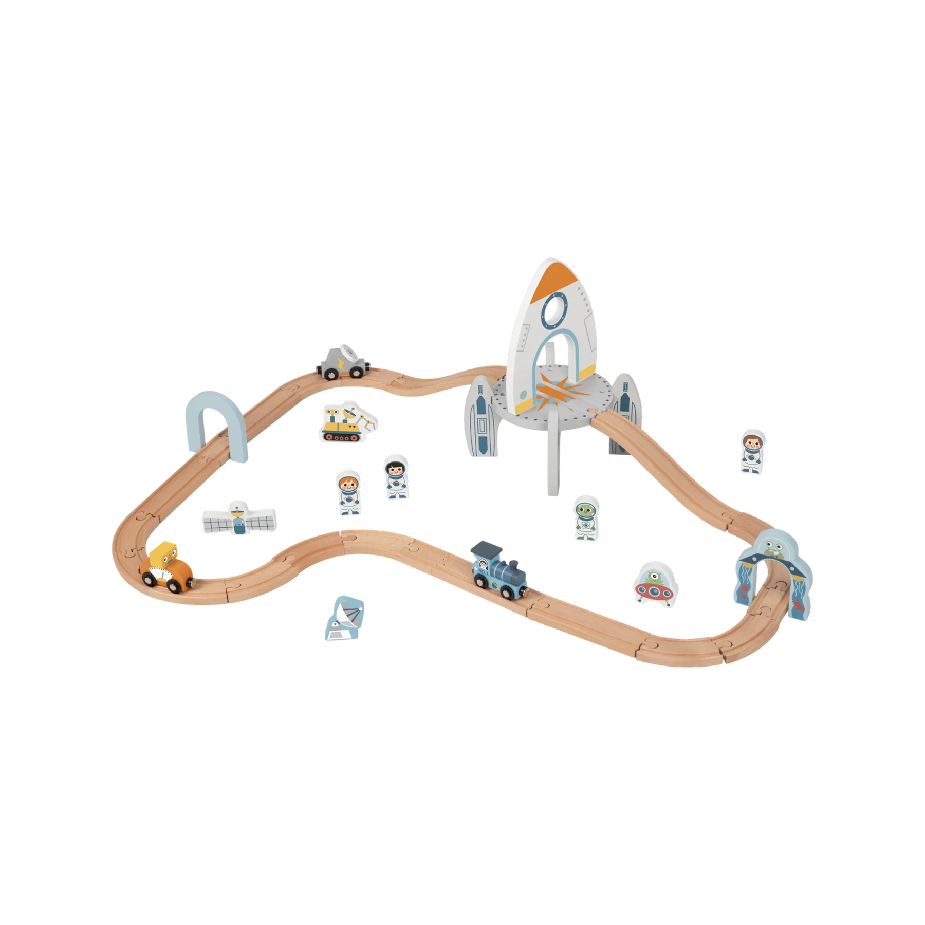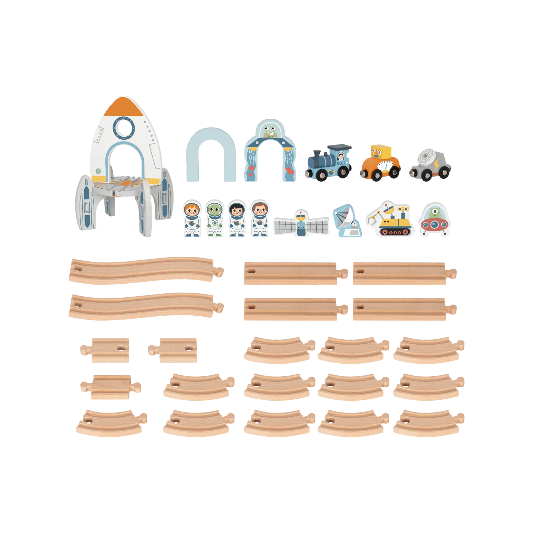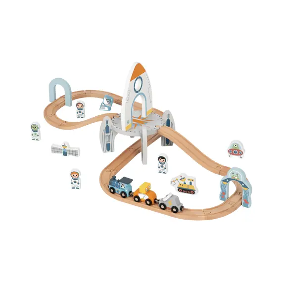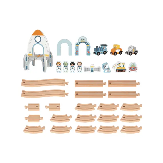 დამატებითი ინფორმაცია: სათამაშო ეხმარება ბავშვს სივრცულ აზროვნებასა და ლოგიკის განვითარებაში, ასწავლის გუნდურობასა და ხელს უწყობს მოტორულ კოორდინაციას. ყოველი შეკრება და სცენარის გათამაშება ზრდის კონცენტრაციას და შემოქმედებითობას. ეს ხის სათამაშო იდეალურია ბავშვებისთვის, ვისაც აინტერესებთ კოსმოსი, მატარებლები და თავგადასავლები — გზავნილი მათ წარმოსახვას შორს, ვარსკვლავებამდე. TOOKY TOY PREMIUM-ის კოსმოსური მატარებლის ნაკრები მოიცავს 35 ელემენტს, მათ შორის კოსმოსურ სადგურს, მატარებლის ხის რელსებს, ასტრონავტებსა და თემატურ დეკორაციებს. Montessori პრინციპებზე დაყრდნობით შექმნილი კომპლექტი აერთიანებს გართობასა და შემეცნებას ერთ თამაშში.
