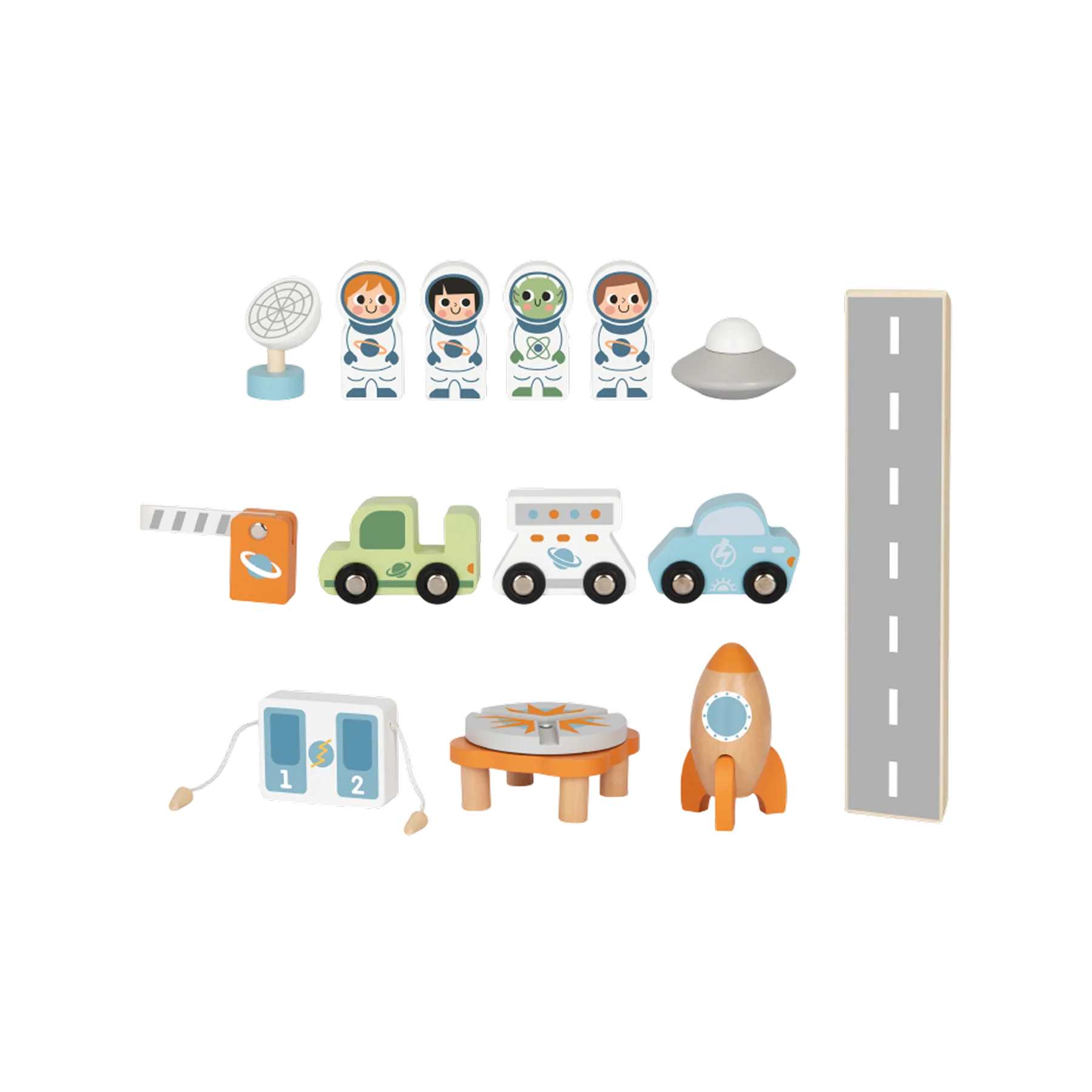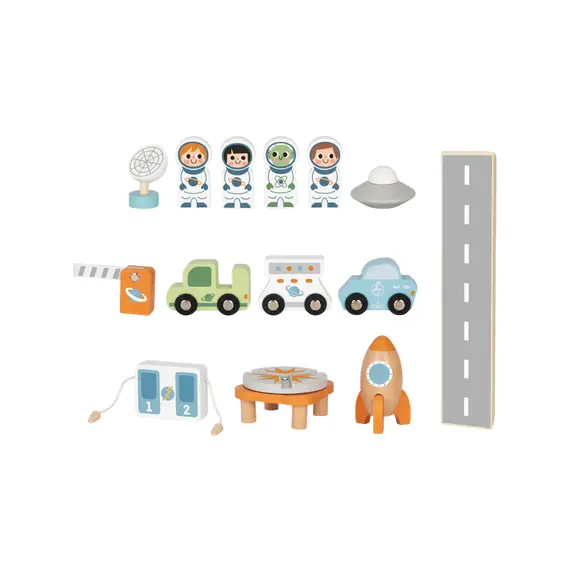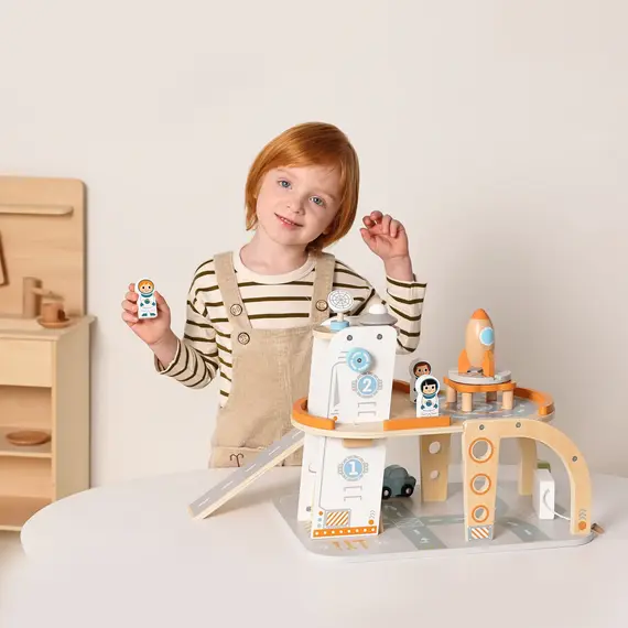 დამატებითი ინფორმაცია: ეს ხის სათამაშო ეხმარება ბავშვს განავითაროს სივრცითი აზროვნება, ლოგიკა და კოორდინაცია, ასწავლის კოსმოსის აღქმას დამოუკიდებლად და თამაშით, ამავდროულად კი აძლიერებს ფანტაზიასა და შემოქმედებით უნარებს. იდეალურია პატარა მკვლევრებისთვის, რომლებიც საკუთარ კოსმოსურ ბაზას ააწყობენ და თავიანთ წარმოდგენებში გაჰყვებიან ვარსკვლავურ მისიას. TOOKY TOY PREMIUM-ის კოსმოსური სადგური მოიცავს 14 ხის ელემენტს — ასტრონავტები, კოსმოსური ხომალდი, სამეთვალყურეო პანელი და მრავალსართულიანი პლატფორმა ქმნის სრულფასოვან თემატურ სამყაროს. კომპლექტი შექმნილია Montessori პრინციპებზე დაყრდნობით, რაც გაერთიანებულად სთავაზობს ბავშვს შემეცნებასა და გართობას ერთ აქტივობაში.