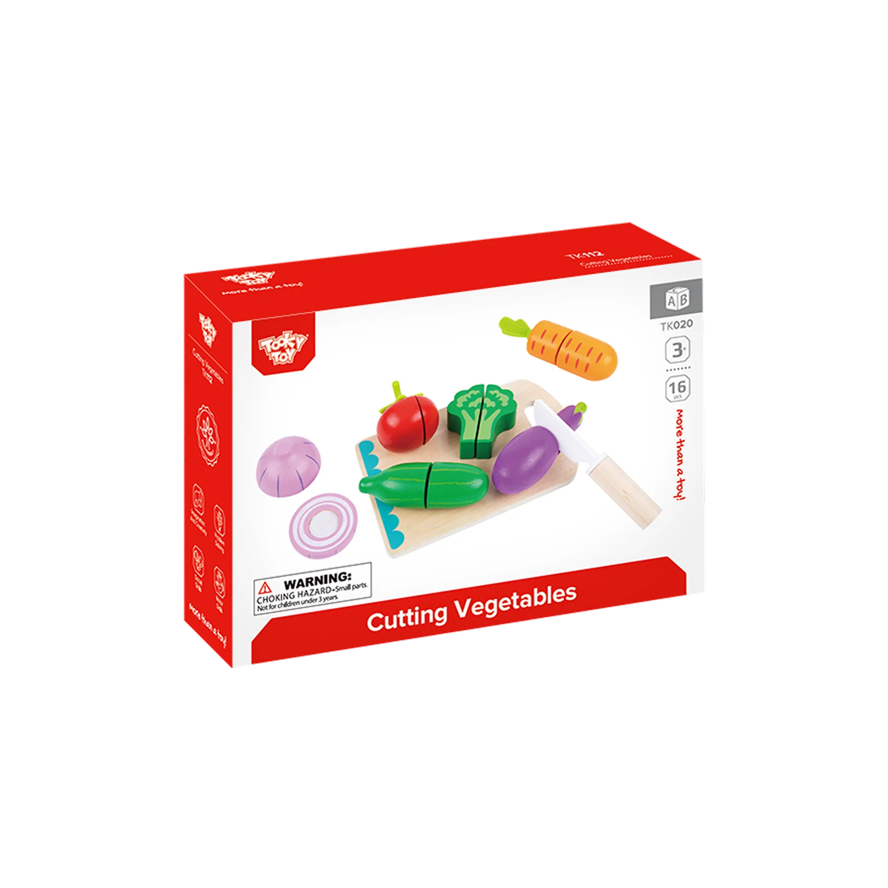 დამატებითი ინფორმაცია: სათამაშო ეხმარება ბავშვს განივითაროს წვრილი მოტორიკა, კოორდინაცია, ფერების ამოცნობა და წარმოსახვა. როლური თამაში ხელს უწყობს რეალური ცხოვრების იმიტაციას და ამავდროულად ამყარებს დამოუკიდებლობის შეგრძნებას. ეს ხის სათამაშო იდეალურია ბავშვებისთვის, რომელთაც სიამოვნებთ სამზარეულოს თამაში და ინტერესდებიან საკვების მომზადების პროცესით. TOOKY TOY PREMIUM-ის ბოსტნეულის საჭრელი კომპლექტი მოიცავს 16 ელემენტს: ხის ბოსტნეულს, სათამაშო დანებსა და დასაჭრელ დაფას. თითოეული ბოსტნეული შედგება ორად დასაკრავი ნაწილებისგან, რომლებიც Velcro-თია შეერთებული და თამაშს კიდევ უფრო რეალისტურს ხდის. კომპლექტი შექმნილია Montessori მიდგომაზე დაყრდნობით, რაც ბავშვს აძლევს პრაქტიკულ გამოცდილებას და ახალისებს შემოქმედებითად სწავლას.
