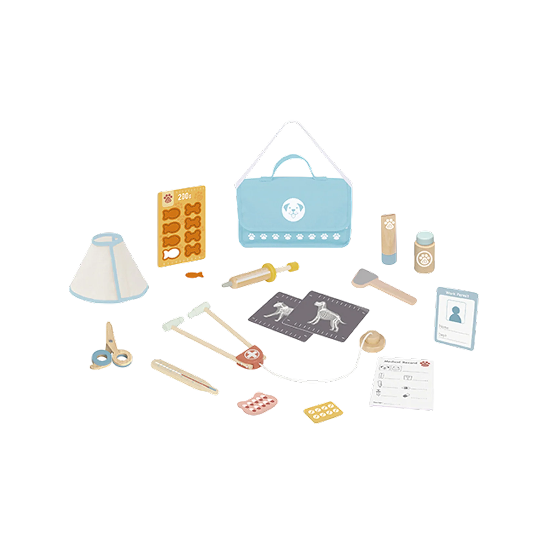 დამატებითი ინფორმაცია: ეს ხის სათამაშო ეხმარება ბავშვს განივითაროს ემპათია, კომუნიკაციის უნარი და წარმოსახვითი აზროვნება. როლური თამაში, რომელშიც პატარა ვეტერინარი ზრუნავს ცხოველებზე, ხელს უწყობს პასუხისმგებლობის გრძნობასა და სოციალურ ინტელექტს. TOOKY TOY PREMIUM-ის ვეტერინარის ნაკრები შეიცავს 16 ელემენტს – თერმომეტრი, წამლები, შპრიცი და სხვა აქსესუარები ქმნის სრულ ვეტერინარულ გარემოს. კომპლექტი Montessori პრინციპებზეა დაფუძნებული და აერთიანებს თამაშს, თვითგამოხატვასა და სწავლებას ერთ მარტივ, უსაფრთხო სათამაშოში.