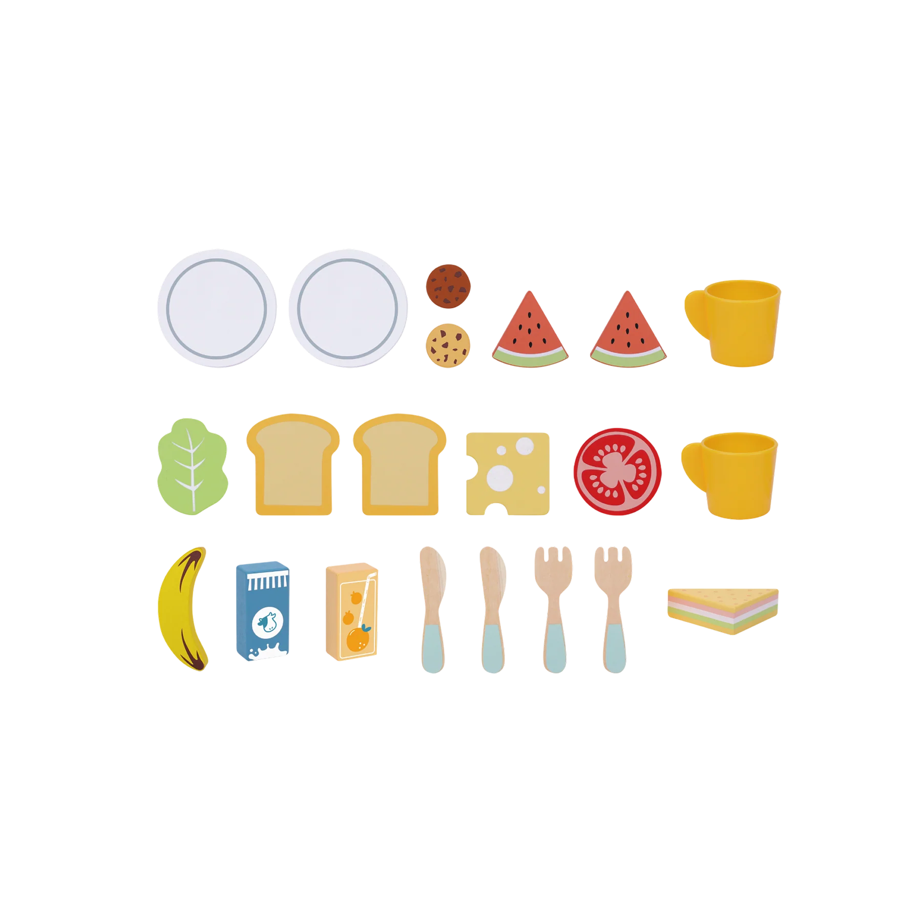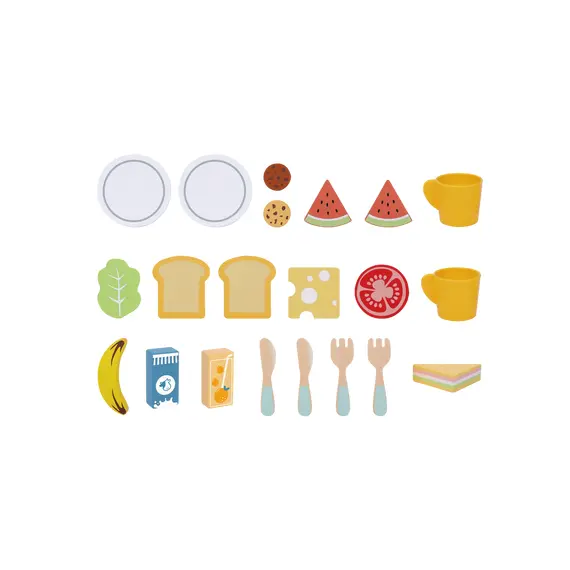 დამატებითი ინფორმაცია: ეს ფერადი ხის კომპლექტი აერთიანებს ყველაფერს, რაც სჭირდება პატარა მასპინძელს მხიარული პიკნიკის მოწყობისთვის – ჭურჭელი, საჭმლის იმიტაციები და სტილიზებული კალათა ქმნის რეალისტურ სცენარს, რომელიც ასწავლის ბავშვებს სოციალურ ურთიერთობასა და პასუხისმგებლობას. TOOKY TOY PREMIUM-ის 23-ნაწილიანი პიკნიკის კალათა Montessori პრინციპებზე დაფუძნებული სათამაშოა, რომელიც ხელს უწყობს მოძრაობის კოორდინაციის, ლოგიკისა და კომუნიკაციის უნარების განვითარებას დამოუკიდებლად და ჯგუფურად თამაშისას.