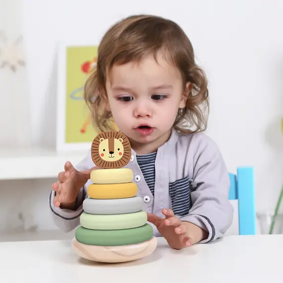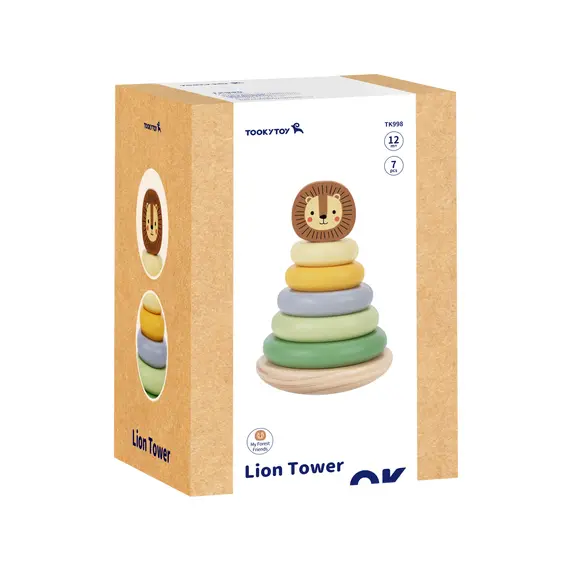 დამატებითი ინფორამცია: TOOKY TOY PREMIUM-ის ლომის კოშკი იდეალურია ბავშვისთვის, ვინც იწყებს მოტორული უნარების განვითარებას. ეს ხის სათამაშო ასწავლის ზომების გარჩევას, თანმიმდევრულობასა და კონცენტრაციას – ყველაფერი თამაშით და გართობით. საყვარელი ლომის თემატიკა და ფერადი რგოლები ახალისებს პატარებს დამოუკიდებელი აღმოჩენებისა და დამახსოვრებისკენ. Montessori მიდგომით შექმნილი დიზაინი ხელს უწყობს ხელის–თვალის კოორდინაციას, ფორმის აღქმასა და ფანტაზიის განვითარებას.