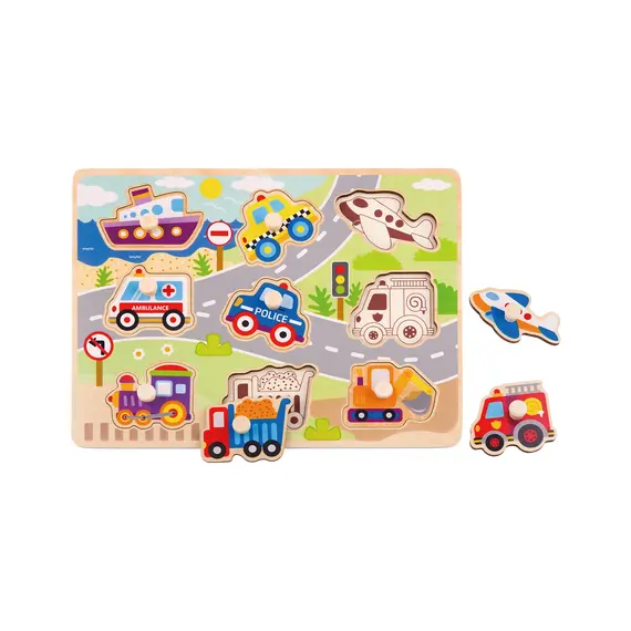 აღწერა: მანქანების, ფერების და მოძრაობის თემის შესწავლა თამაშით, TOOKY TOY PREMIUM-ის სატრანსპორტო თავსატეხი აძლევს პატარებს შესაძლებლობას გაიცნონ სხვადასხვა სატრანსპორტო საშუალებები, ისწავლონ ფერები და განივითარონ თავიანთი წარმოსახვა.