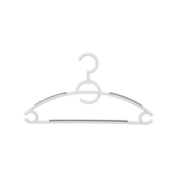 PLAST ART 430-ის პლასტმასის ტანსაცმლის საკიდი სილიკონით (თეთრი, 3 ც.) უზრუნველყოფს მტკიცე და მოცურების საწინააღმდეგო შენახვას, გამძლე და ელეგანტური დიზაინით.
