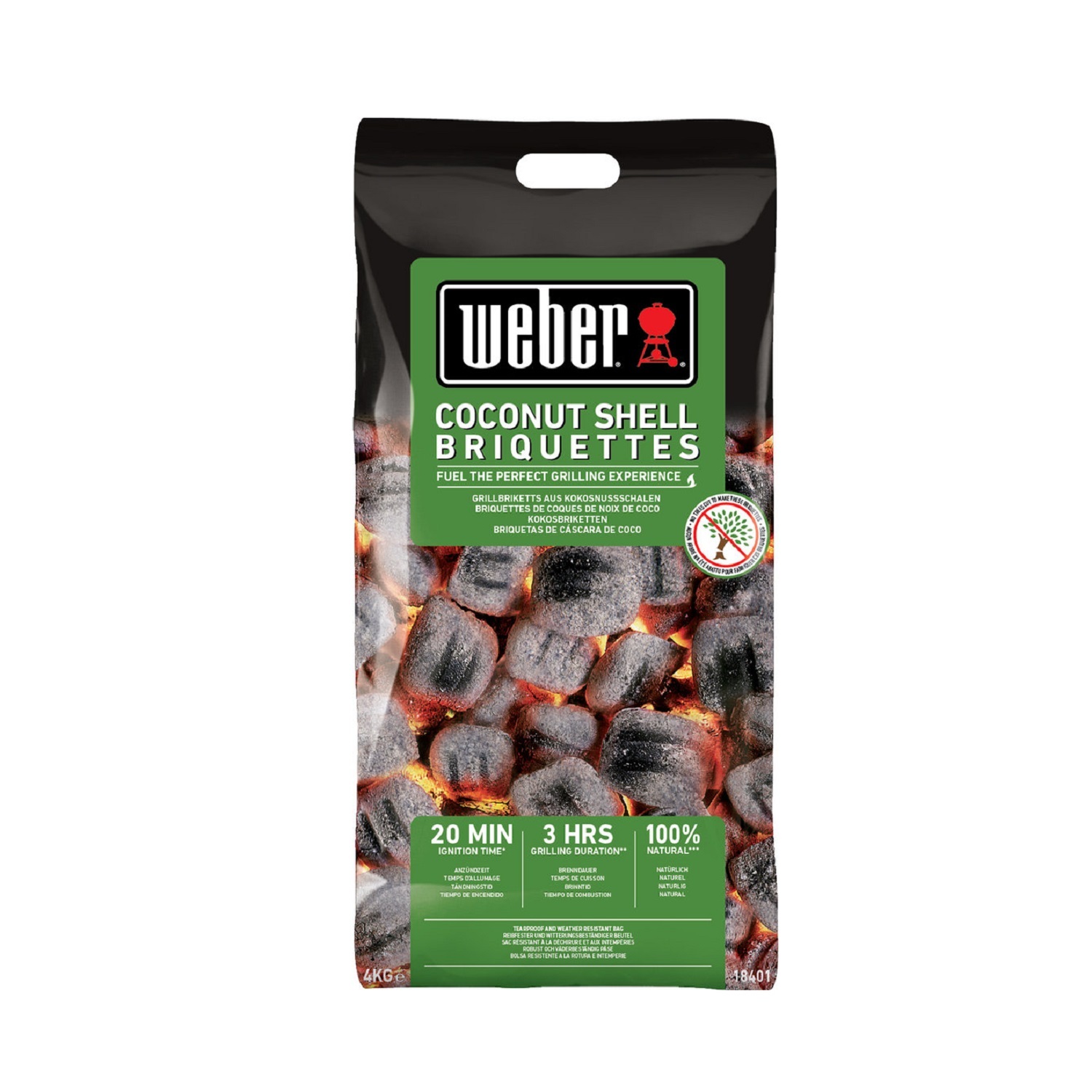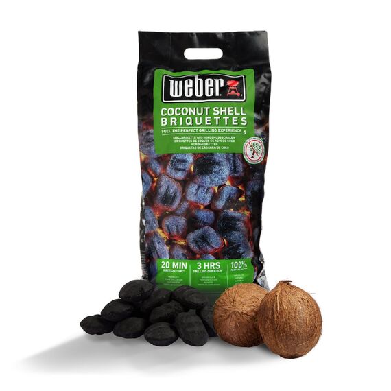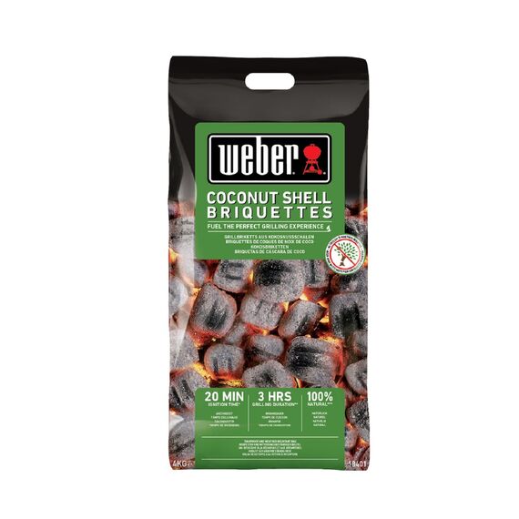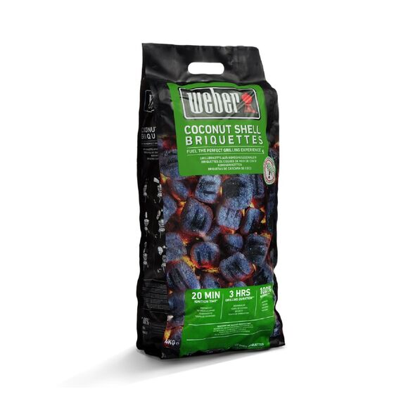 Weber-ის ქოქოსის ქერქის ნახშირის ბრიკეტები არის ნახშირის მაღალი ხარისხის ალტერნატივა, რომელიც უზრუნველყოფს სიმხურვალის შენარჩუნებას 3 საათის განმავლობაში. თქვენ არ მოგიწევთ დიდხანს ლოდინი - გაღვივების პერიოდი მხოლოდ 20 წუთს შეადგენს. ბრიკეტირებული ნახშირი დამზადებულია 100% ნატურალური მასალისგან - ნახშირბადოვანი ქოქოსის ნაჭუჭები და ტაპიოკას სახამებელი და არ შეიცავს ხეს.