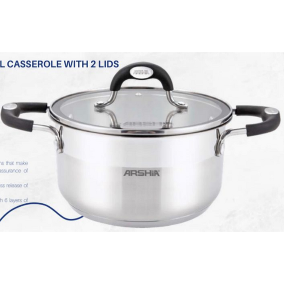 ქვაბი მეტალის 28x14სმ მინის და მეტალის თავსახურით arshia SS478-3082