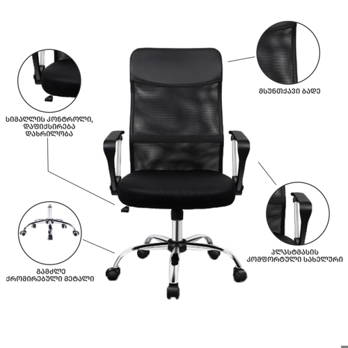 სკამის სიმაღლე (რეგულირებადი): 106-116 სმ"