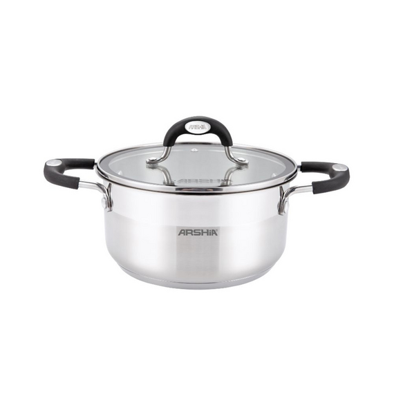 მეტალის ქვაბი მინის და მეტალის თავსახურით Arshia SS478-3081 26x13სმ