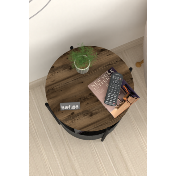 ყავის მაგიდა კალათით მუქი ხის ფაქტურით (556)