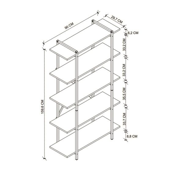 5-დონიანი თარო (160*90) ფიჭვის ფაქტურით (564)
