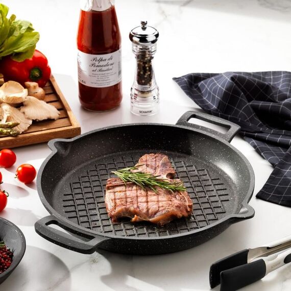 SCHAFER Famos ცეცხლგამძლე არაწებოვანი 30 სმ თუჯის გრილი ტაფა - ნაცრისფერი