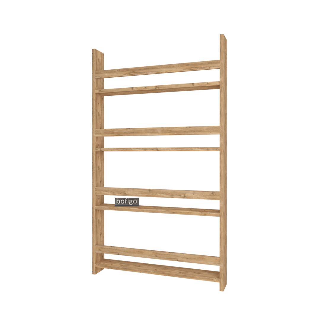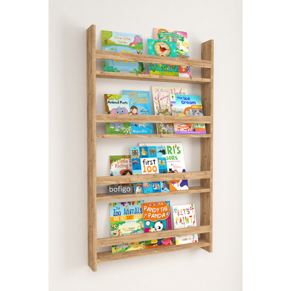 წიგნების 4-დონიანი კედლის თარო ფიჭვის ფაქტურით