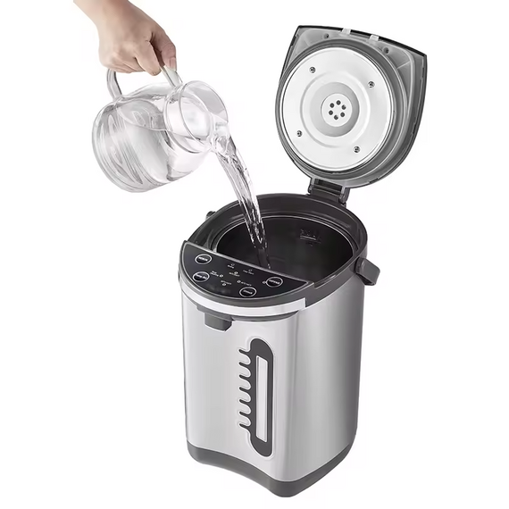 თერმო ჩაიდანი სწრაფად და მარტივად ადუღებს 6 ლიტრამდე წყალს. კორპუსზე არსებული LED ეკრანის საშუალებით მარტივად შეძლებთ ტემპერატურის რეგულირებას. სითბოს შენარჩუნების რეჟიმი უზრუნველყოფს ცხელ წყალს მთელი დღის განმავლობაში. ჩაიდნის უსაფრთხოდ გამოსაყენებლად აქვს გადახურებისგან დაცვის ფუნქცია უწყლოდ ჩართვის შემთვევაში. აქვს უჟანგავი ფოლადის შიდა საფარი, დახვეწილი და ელეგანტური დიზაინი და 360°-ით ბრუნვის შესაძლებლობა . მოწყობილობა პრაქტიკული გამოსაყენებელი და მარტივად გასაწმენდია.