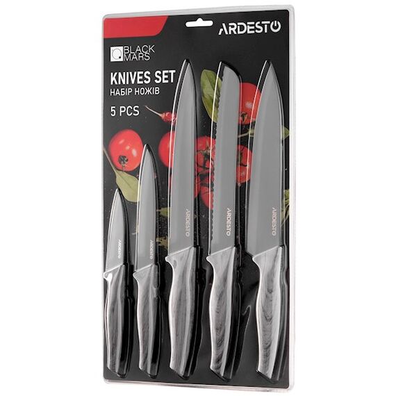 დანების ნაკრები Ardesto AR2105BG Black Mars, 5Pcs, Knife Set, Silver