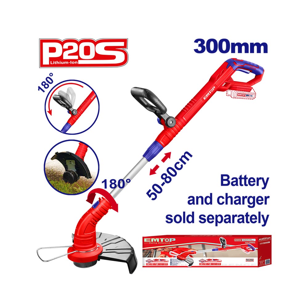 ბალახის სათიბი Li-Ion 20ვ (ელემენტის გარეშე) Emtop-ELGT20018