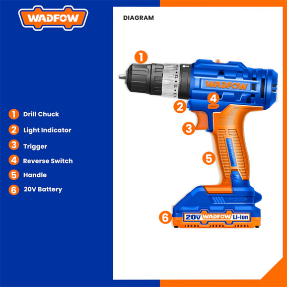 აკუმულატორული სახრახნისი WADFOW WCDP522 (20 V)