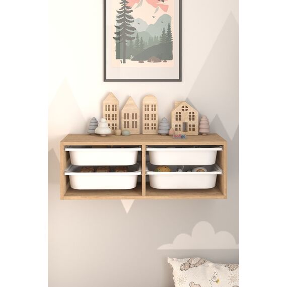 მრავალფუნქციური კედლის ორგანაიზერი ფიჭვის ფაქტურით პლასტმასის კალათით (BF-698)