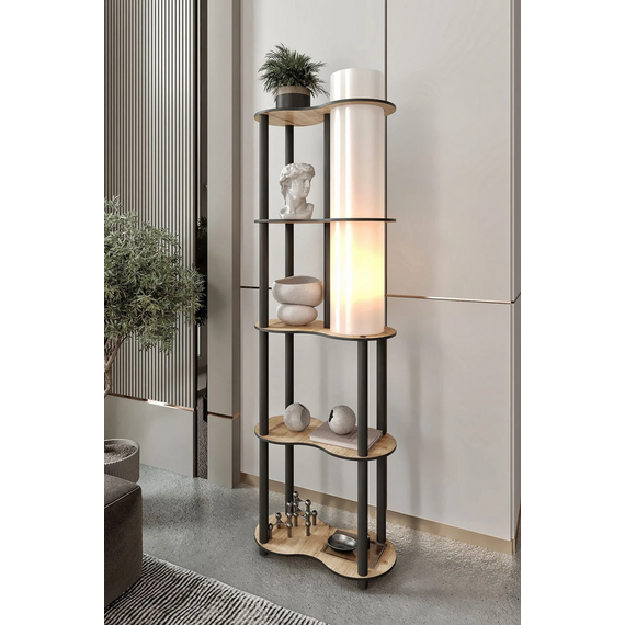 ტორშერის ფეხი დამზადებულია უახლესი კრაფტ ტექნოლოგიით და სპეციალური ფერადი ფირით. აბაჟური დამზადებულია 350 მიკრონიანი PVC ფოლგისაგან.აქვს უმაღლესი ხარისხის ლამინატის თაროები.