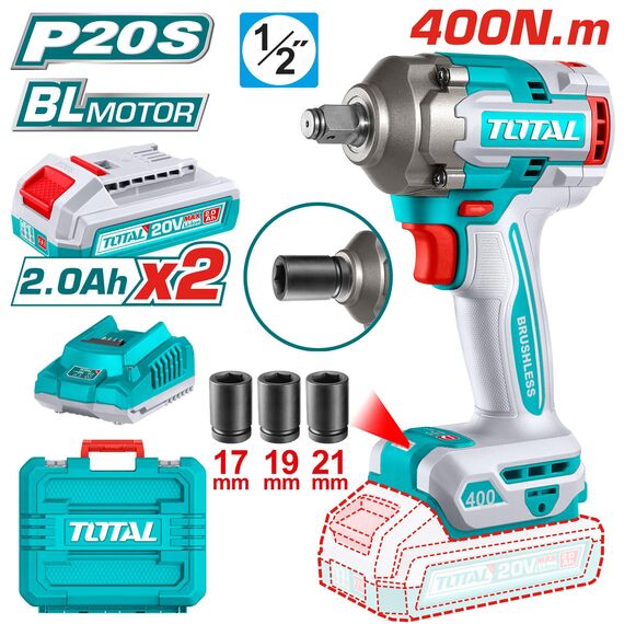 აკუმულატორული ქანჩის გასაღები 20ვ, 400ნმ TOTAL TIWLI2040