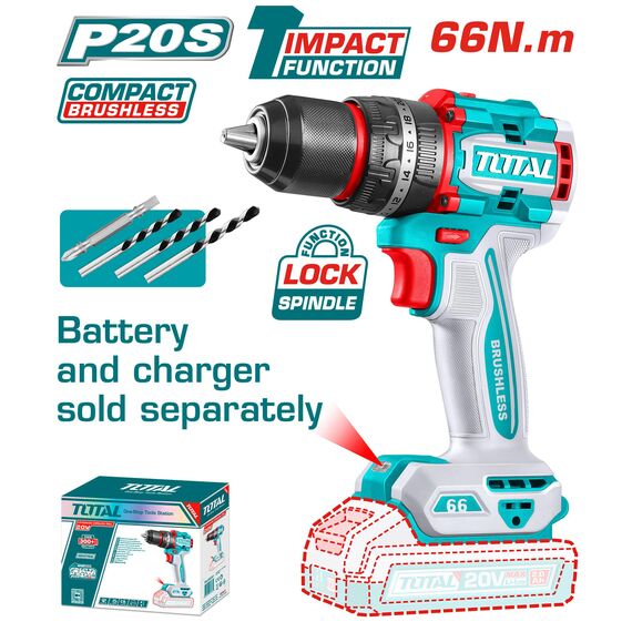 აკუმულატორული ბურღი სახრახნისი 20ვ, 66ნმ TOTAL TIDLI206681