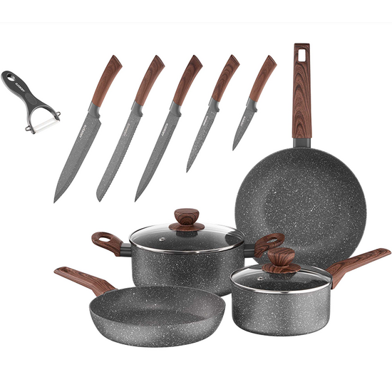 ქვაბებისა და ტაფების ნაკრები + დანების ნაკრები ARDESTO AR1912CGS (12 PCS)