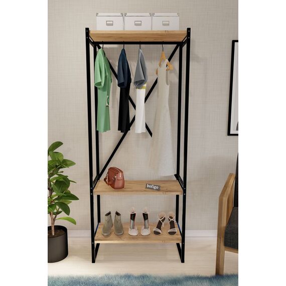ღია გარდერობი/ფეხსაცმლის თარო ფიჭვის ფაქტურით (142)