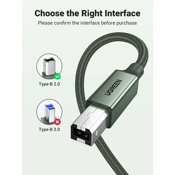 პრინტერის კაბელი UGREEN (90817), USB-A To USB-B, 3m, Green