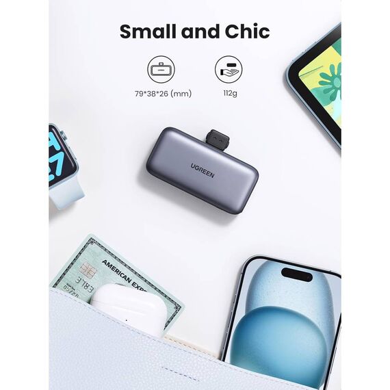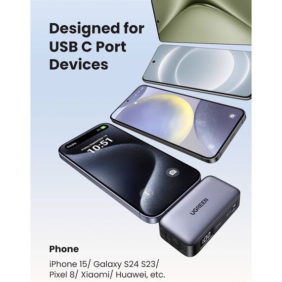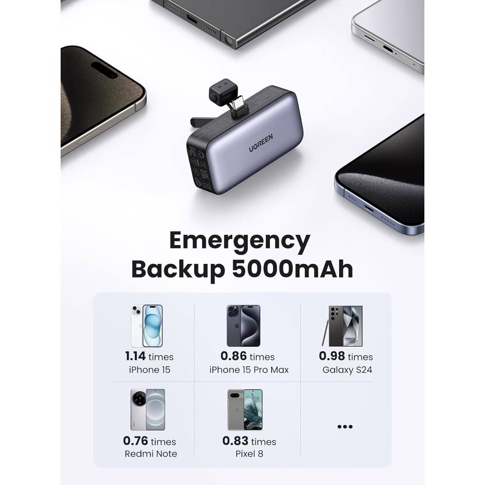 პორტატული დამტენი UGREEN PB503 (35338), 5000mAh 22.5W, Type-C, Built-In Type-C Power Bank, Grey