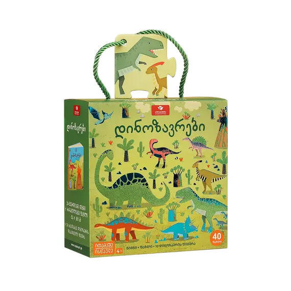 დინოზავრები + წიგნი + ფაზლი + 10 დასადგმელი ფიგურა