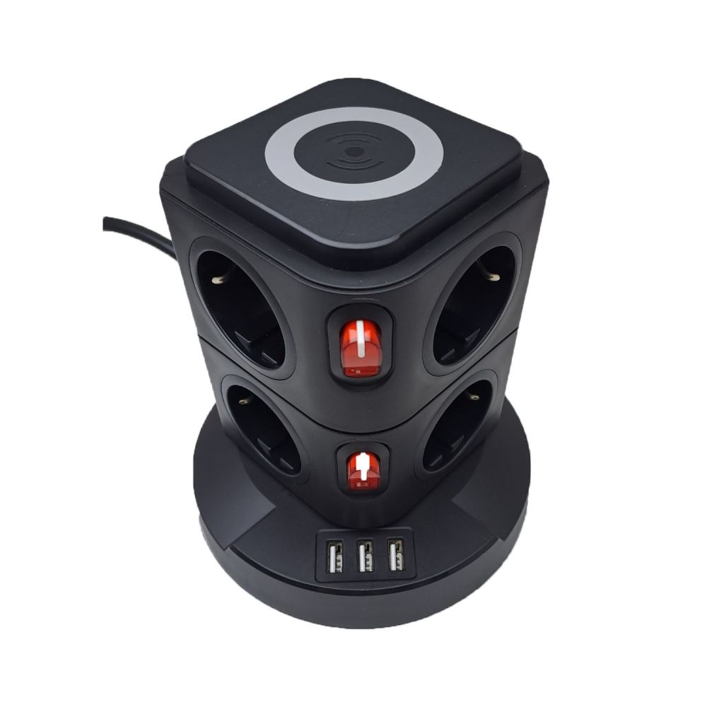 8 განყოფილება და დამატებითი 3 USB პორტი (5V 2.4A) სმარტფონებისთვის, ლეპტოპებისთვის და სხვა ციფრული მოწყობილობებისთვის.