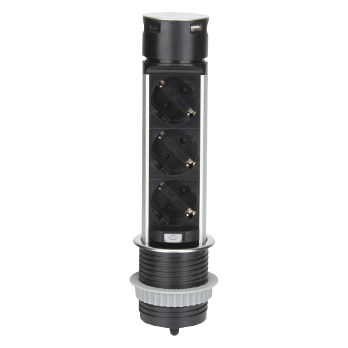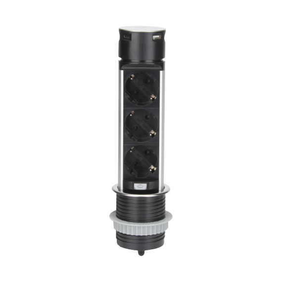 დამაგრძელებელი ORNO 3х1,5მ Schuko Ø60 USB-A და C INOX OR-GM-9027 GS