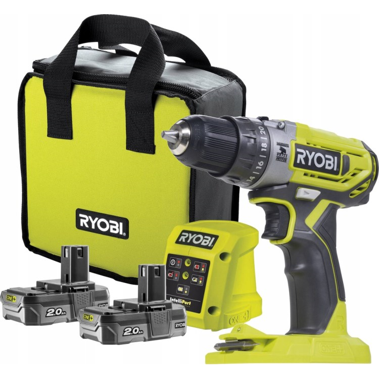 დრელი-სჭვალსახრახნი აკუმულატორის Ryobi ONE+ R18PD2-220S 18V