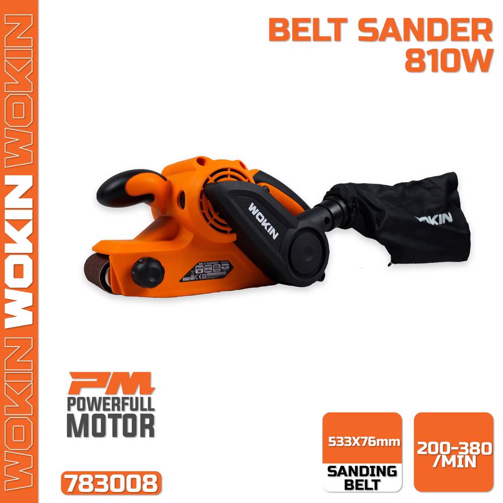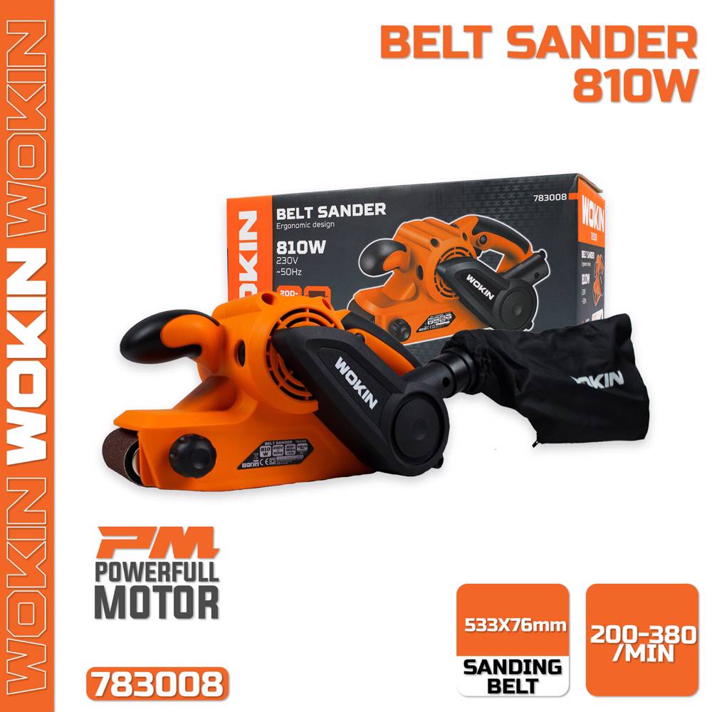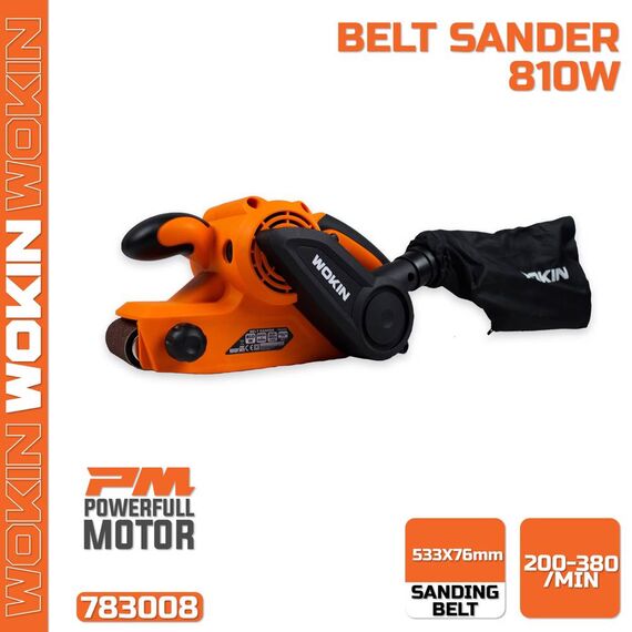 ლენტური სახეხი მანქანა Wokin 783008, 810W, Belt Sander, Black/Orange