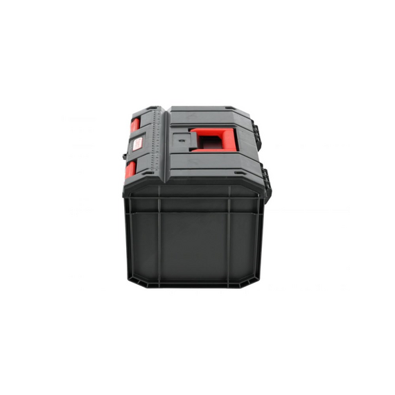 ინოვაციური კონსტრუქცია უზრუნველყოფს მაღალ მდგრადობას დაზიანების მიმართ, ამავდროულად ინარჩუნებს მცირე წონას და კომპაქტურ ზომებს. სახაზავი სახურავზე. ყუთს გააჩნია განყოფილება საკეტისთვის. ერგონომიული სახელური მარტივი ტრანსპორტირებისთვის.