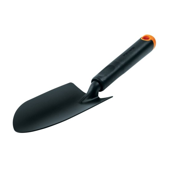 Fiskars Ergo Trowel იდეალურია მყარი ნიადაგისთვის, გააჩნია მსუბუქი და ერგონომიული სახელური, ყულფი ჩამოსაკიდებლად.