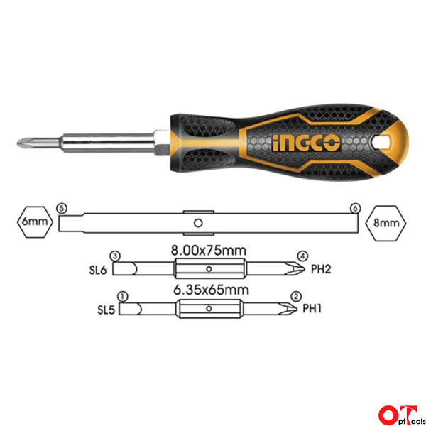 სახრახნისის ნაკრები ორმხრივი Ingco AKISD0608 6 ც.