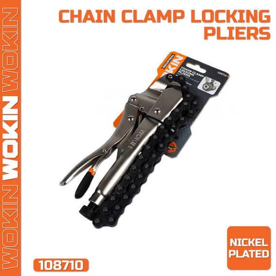 სპეციალიზირებული ბრტყეტუჩა ჩამკეტით 108710 Wokin, 460MM, 18″, Chain Clamp Locking Pliers (INDUSTRIAL), Silver