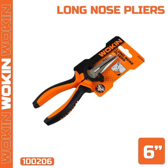 გრძელცხვირა რეზინის სახელურით Wokin 100206, 160MM, 6\", Long Nose Pliers, Black/Orange
