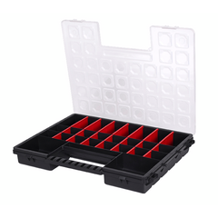 კლასიკური ფორმა, მოსახერხებელი სახელური, დიდი ტევადობა, გამჭვირვალე სახურავი, 26 განყოფილება წვრილმანებისთვის, 21 რეგულირებადი ტიხარი. ტექნიკური მახასიათებლები: • მწარმოებელი: Patrol ფიზიკური პარამეტრები: • მასალა: პლასტმასი • ზომა: 460x325x80 მმ * მწარმოებელი იტოვებს უფლებას გაფრთხილების...