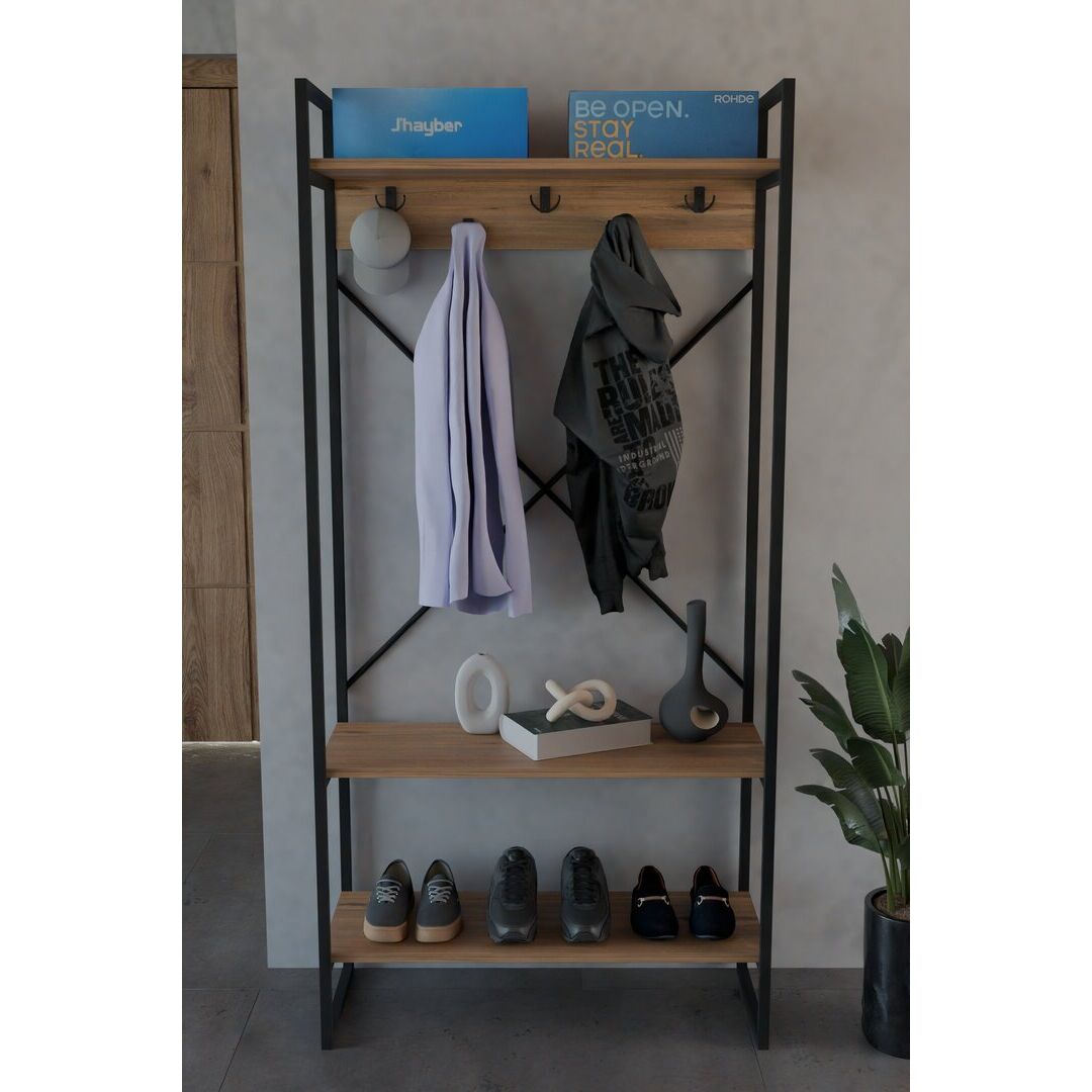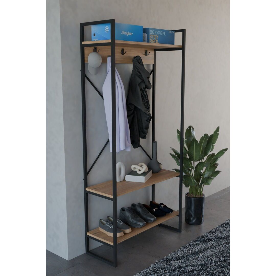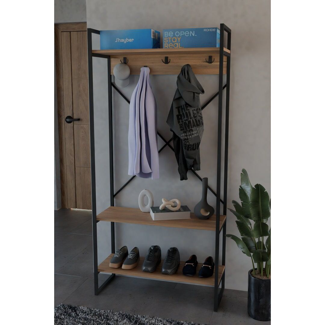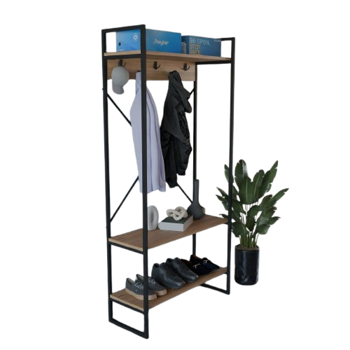ტანსაცმლის საკიდი თაროებით ფიჭვის ფაქტურით (FD1001)