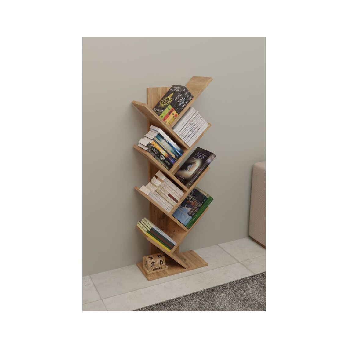 წიგნების დეკორატიული თარო ფიჭვის ფაქტურით (FD1091)