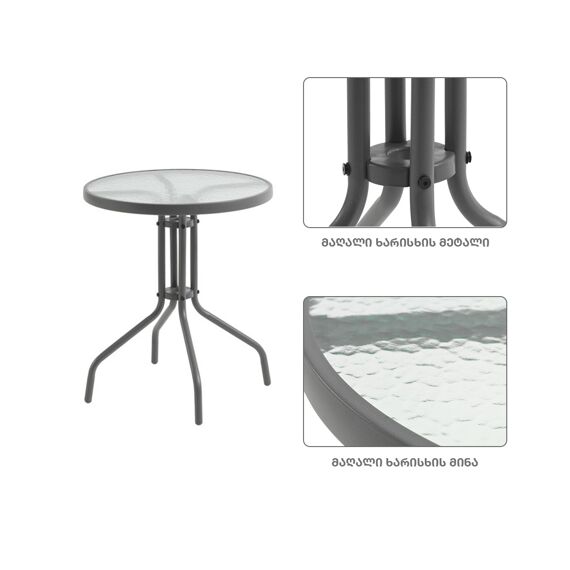 ნაწრთობი მინის მაგიდა, მეტალის კარკასით თქვენს ინტერიერსა თუ ექსტერიერს შესძენს მყუდროებას და გამორჩეულ დიზაინს.