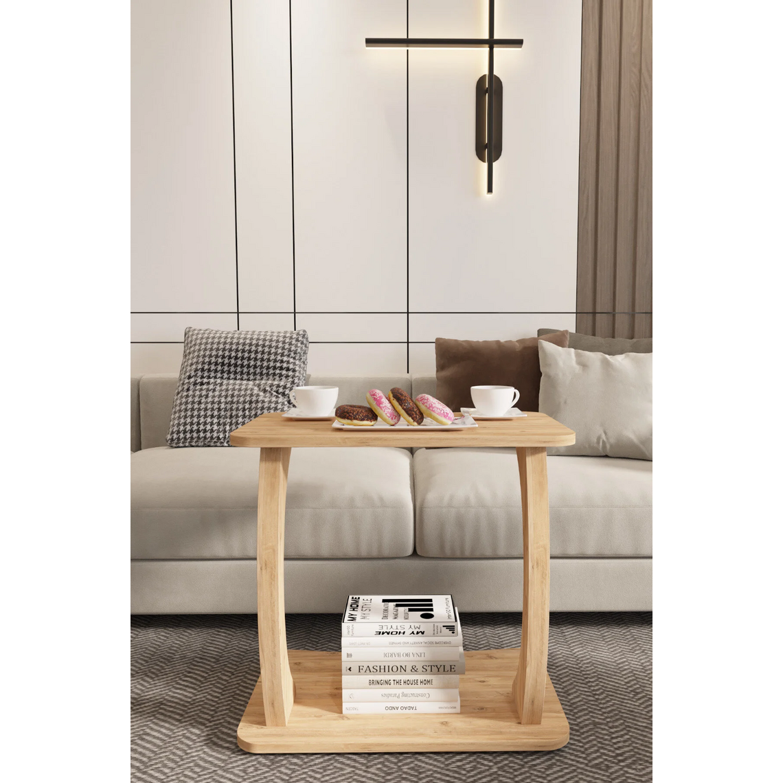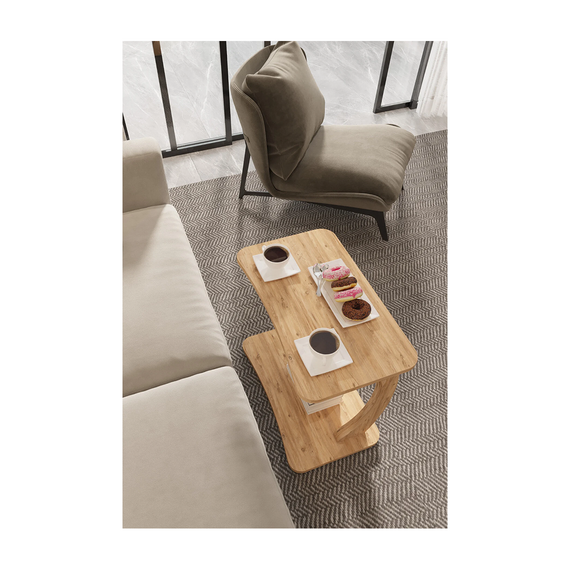 ყავის მაგიდა გორგოლაჭებზე ფიჭვის ფაქტურით (LP3-A) (1129)