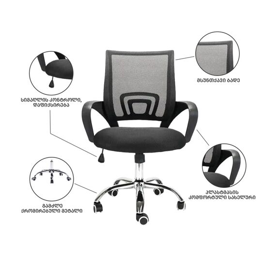 საოფისე სკამი ბადისებრი საზურგით, გორგოლაჭებზე