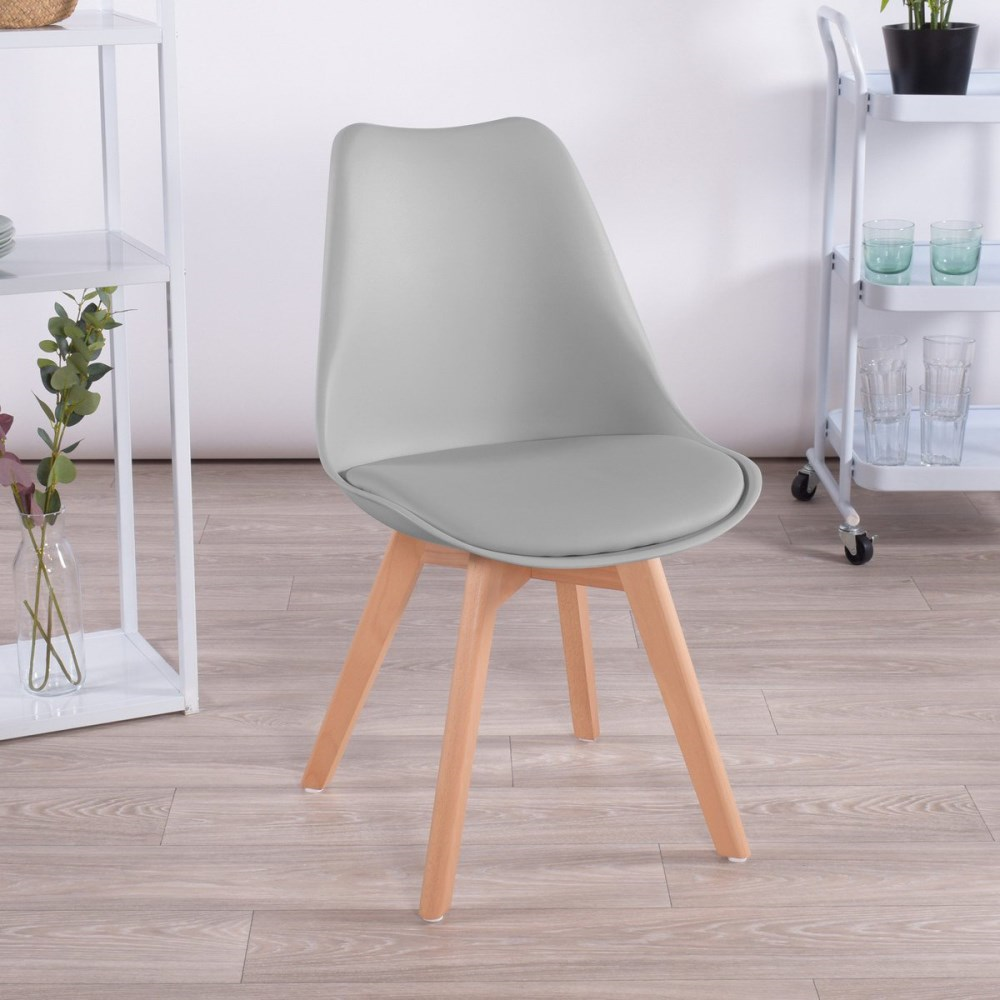 სკამს გააჩნია ერგონომიული საზურგე და კონტურული დასაჯდომი. წიფლის ფეხები დამატებითი გამძლეობისთვის. სავარძელი დაფარულია პოლიპროპილენით და პოლიურეთანის შიგთავსი ზრდის კომფორტს. დიზაინი შესრულებულია სკანდინავიურ სტილში, რაც ქმნის თანამედროვეობის შეგრძნებას. ადვილად გასაწმენდი.