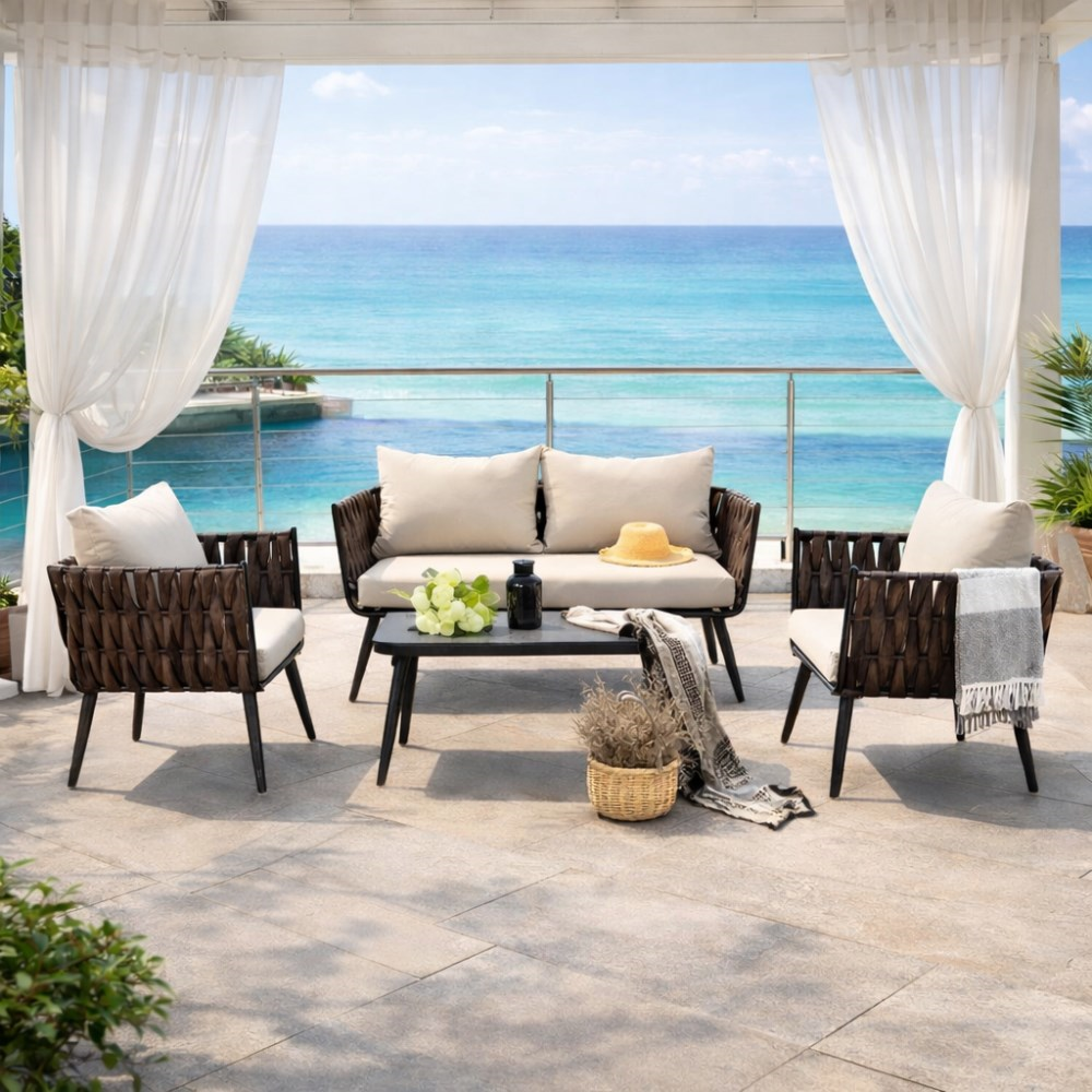 კომპლექტი ბაღის ავეჯის მაგიდა 2 სავარძელი და დივანი JHA-16010