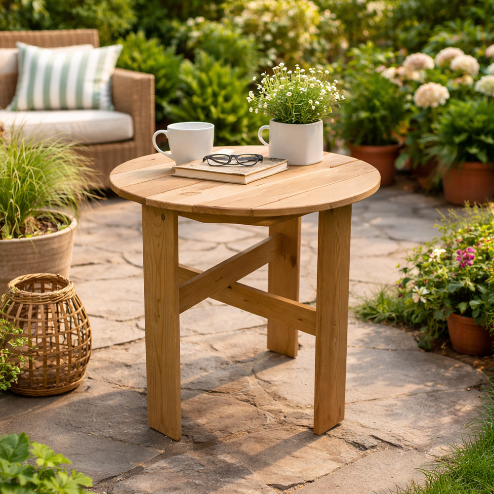 მაგიდა დამზადებულია ხარისხიანი ხისგან, რომელიც გამოირჩევა ბუნებრივი ტექსტურით, სიმყრითა და ეკოლოგიურობით. ღია ხისფერი ფერი პროდუქტს ანიჭებს სითბოსა და სიმსუბუქის შეგრძნებას, მარტივად ერწყმის სხვადასხვა სტილის გარე ავეჯსა და დეკორს. კომპაქტური ზომების წყალობით მაგიდა იდეალურია ინდივიდუალური გამოყენებისთვის — ყავის დასალევად, წიგნის წასაკითხად ან მცირე დეკორატიული ნივთების დასადებად. მყარი კონსტრუქცია უზრუნველყოფს სტაბილურობას ყოველდღიური გამოყენების დროს.