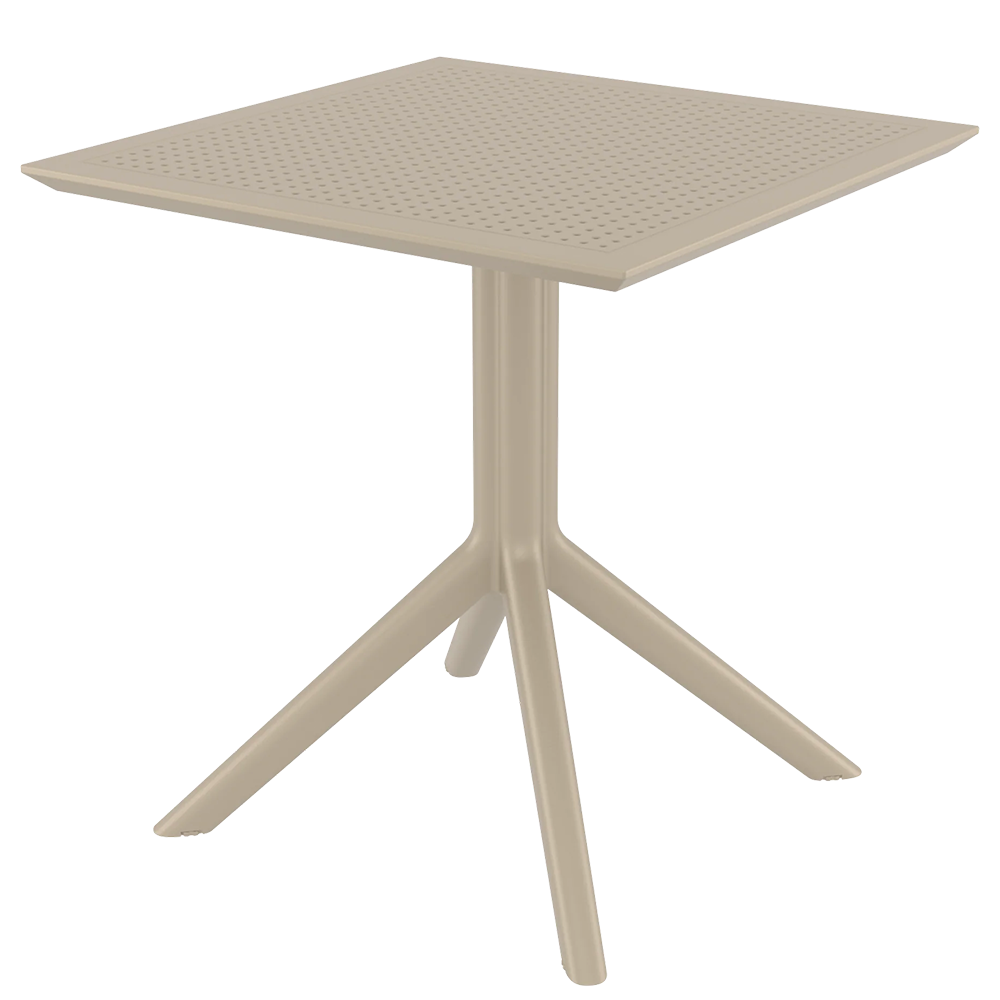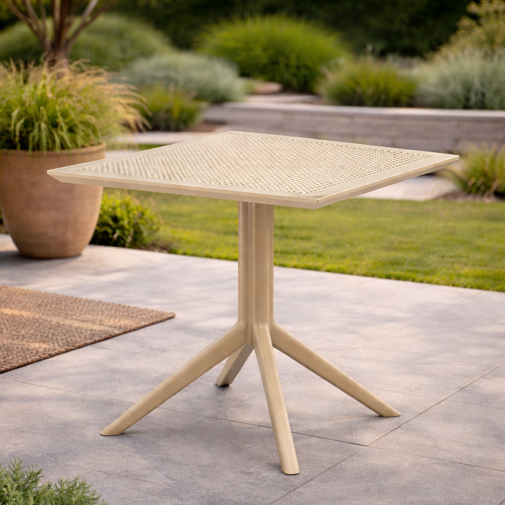მაგიდა დამზადებულია მაღალი ხარისხის პოლიპროპილენისგან, რომელიც გამოირჩევა ტენგამძლეობით, მზის სხივებისადმი მდგრადობითა და ყოველდღიური გამოყენებისას მაღალი გამძლეობით. მონოლითური ფეხების კონსტრუქცია უზრუნველყოფს სტაბილურობას, ხოლო მსუბუქი წონა ამარტივებს გადაადგილებას და მოვლას. უნივერსალური ბეჟი ფერი მარტივად ერწყმის ნებისმიერ ექსტერიერს და ქმნის მოწესრიგებულ, თანამედროვე ვიზუალს.