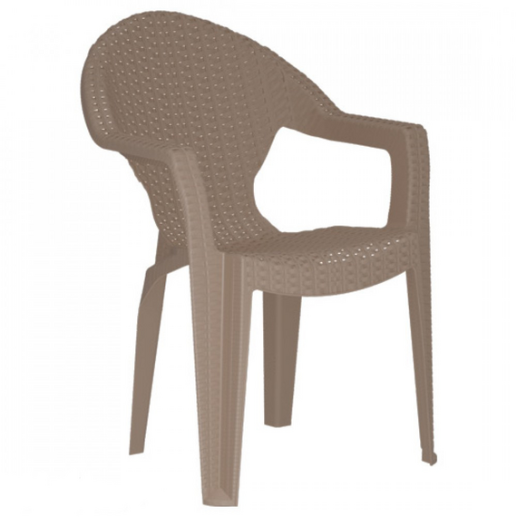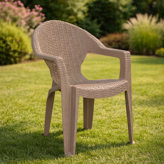 სკამი დამზადებულია გამძლე პლასტმასისგან, რომელიც მდგრადია ტენიანობის, მზის სხივებისა და ტემპერატურის ცვალებადობის მიმართ. მსუბუქი კონსტრუქცია ამარტივებს გადაადგილებას, ხოლო მყარი ფორმა უზრუნველყოფს სტაბილურობასა და უსაფრთხოებას ყოველდღიური გამოყენების დროს. ერგონომიული საზურგე და მკლავები ზრდის კომფორტს და სკამს ხდის მოსახერხებელს როგორც დასვენებისთვის, ისე ხანგრძლივი ჯდომისთვის.