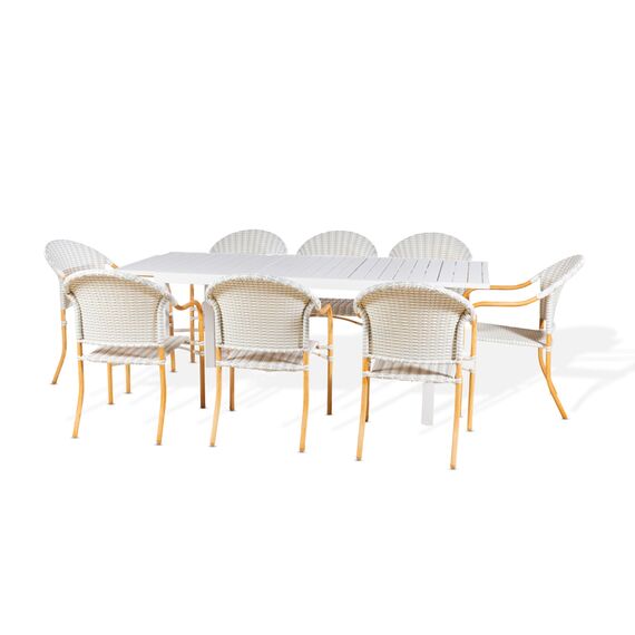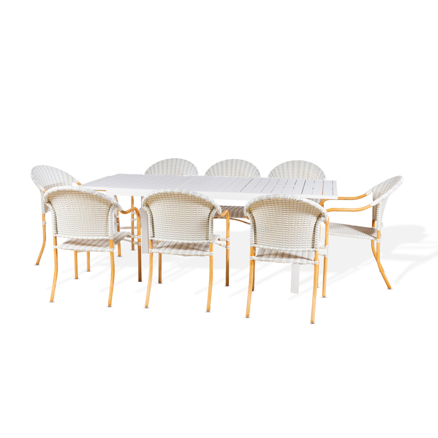 ალუმინის გასალელი მაგიდა + 8 მოწნული სკამი, COMFORT ROOM, გარე ავეჯი, 90x150სმ, ჩინეთი, BH-021B